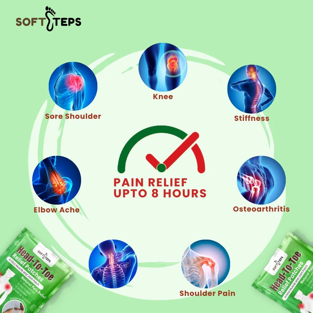 Tired of applying greasy balms or popping pills for everyday aches and pains? Introducing SoftSteps Head-To-Toe Relief Patches – your all-natural, non-messy, and highly effective solution to pain, swelling, and stiffness.